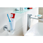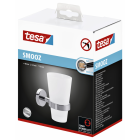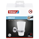 • De tesaSmooz bekerhouder bestaat uit een beker in gesatineerd glas en een hoogglanzende verchroomde drager.
