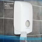- Compatibel met diverse toiletpapierdispenseropties van Kimberly-Clark: Aquarius? commerciële toiletpapierdispensers in wit of zwart (productcodes 6946 en 7172), een dispenser met hoge capaciteit voor gevouwen wc rollen (productcode 6990) en een roestvrijstalen dispenser met luxe uitstraling (productcode 8972).